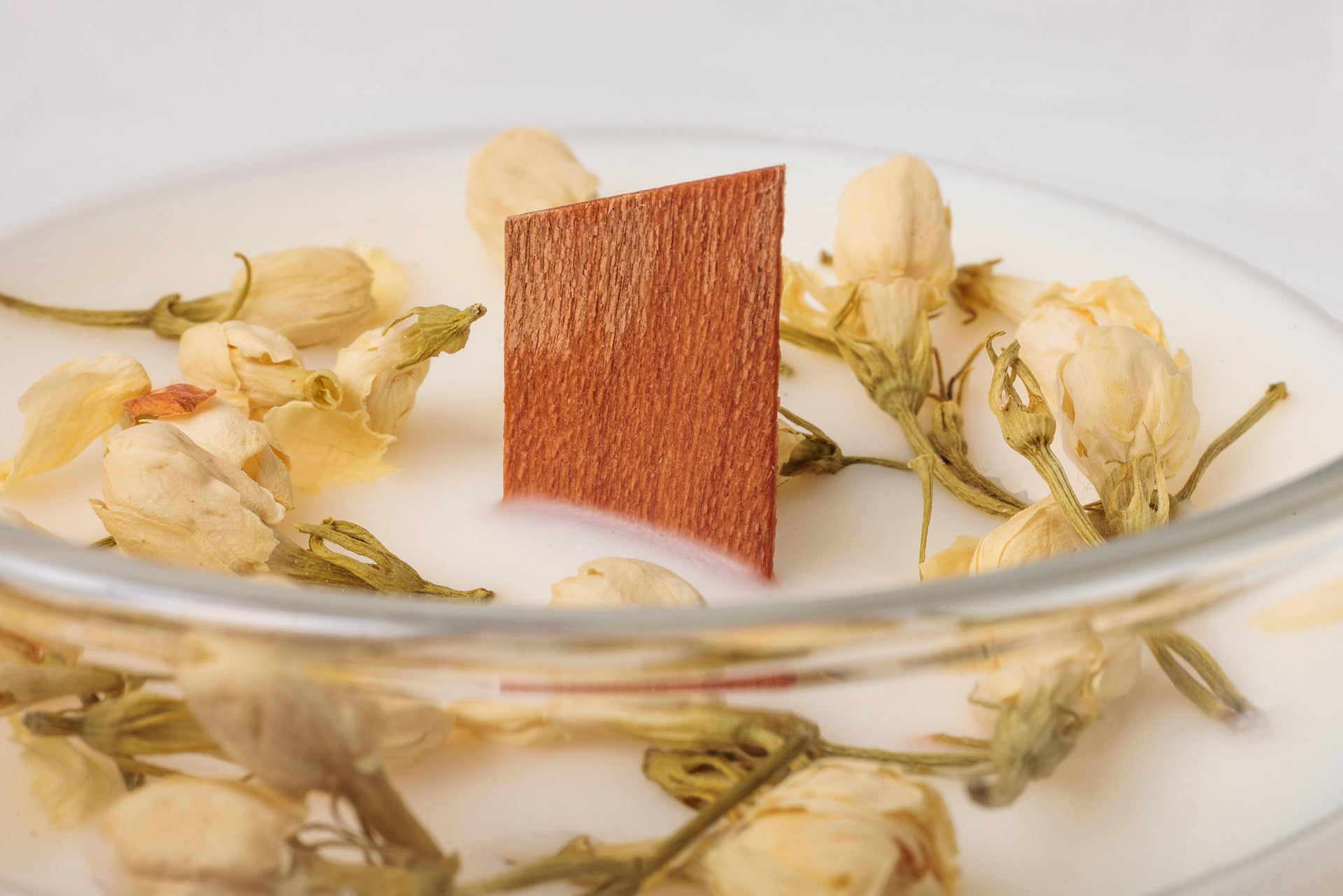 Parametre. Kolekcia: Glow • Vosk: 100% sójový • 180 g • knôt drevený (plochý) • ~35–40 h