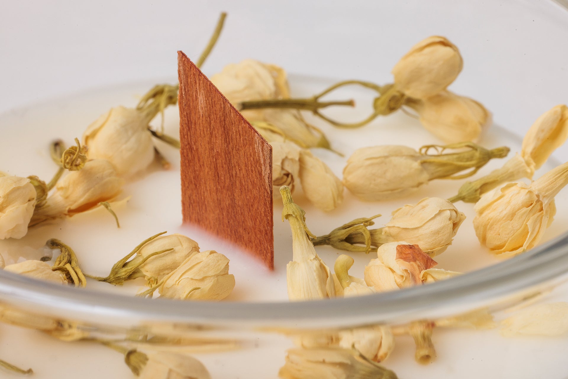 Parametre. Kolekcia: Glow • Vosk: 100% sójový • 180 g • knôt drevený (plochý) • ~35–40 h